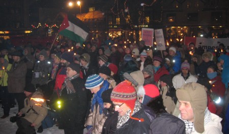 Lørdag var det demonstrasjon med etterfølgende fakkeltog i Tromsø. Vennskap Tromsø - Gaza og Palestinakomiteen var arrangører. Det var appell ved Astrid Eriksen, varamedlem i Vennskap Tromsø - Gaza, og Line Hoaas fra Norsk Folkehjelp, dessuten flere kulturelle innslag - bl.a. Blandakoret Nordaførr. Parolene var: Stopp Israels angrep på Gaza nå. Stans massakrene i Gaza. Boikott Israel. Opphev blokaden straks! [Les reportasje i Nordlys] [Les reportasje i Tromsø]