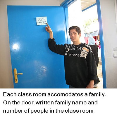 The headmaster of the school is managing the whole situation. Normally, one UN school serves two shifts of schools in one day. Each headmaster and five other assistants take shifts to care for refugees. Also, committees are established by refugees themselves such as cleaning committee, security, medical, problem solving, civil defense training, children consulting, sports and so on.